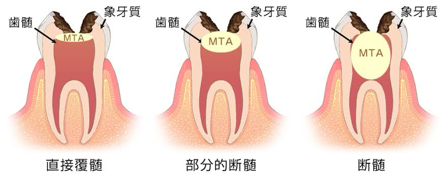 虫歯やケガで神経が少し露出した場合に、薬剤を塗って保護する方法。