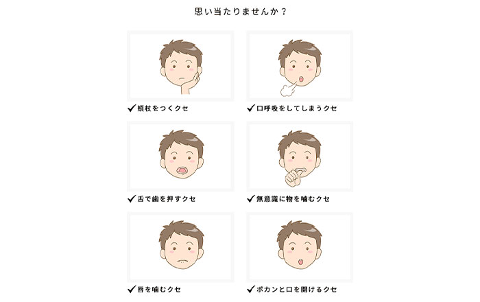 「口腔習癖(こうくうしゅうへき)」とは、口のまわりの無意識な癖のこと。
