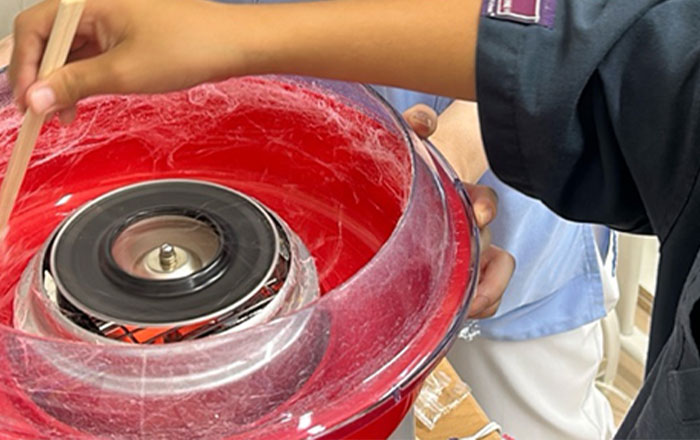 キシリトールの飴を使い、綿あめを楽しんでもらいました。