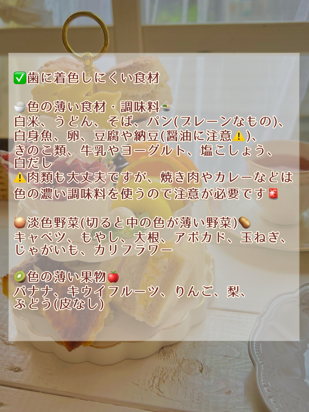 そして、歯に着色しにくい食材は以下のようなものと言われています🎨