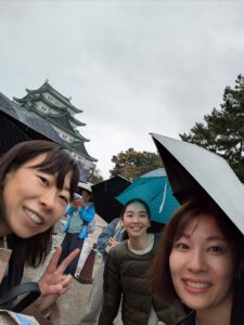 そして名古屋までいかせてもらったので、もちろん観光も!雨の中、名古屋城の金のシャチホコはよりキラキラ輝いてました!ななちゃん人形に会って、味噌カツたべてー、あんかけパスタ?食べ終わって、紅葉も感じることのできた秋の名古屋でした😊