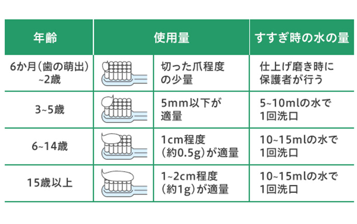 ・ポイント:虫歯予防のために適量を使い、できるだけ歯磨き後のうがいは少なめにしましょう
