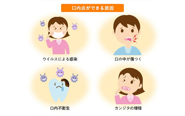 口内炎にはいくつかの種類がありますが、一般的なものとして次のような原因が考えられます。